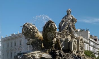 El cruce del Paseo del Prado con la Calle de Alcalá y el Paseo de Recoletos, en el centro de la ciudad de Madrid, encuentra al que muchos consideran el sitio más simbólico y representativo de la capital española. La cita es para la emblemática Plaza de Cibeles, cuyo elemento de mayor importancia es la fuente homónima, diseñada -bajo la orden del Rey Carlos III- por el célebre arquitecto español Buenaventura Rodríguez Tizón (Ventura Rodríguez, para el conocimiento popular) y esculpida en mármol, en el año 1782; el proyecto fue llevado a cabo por los escultores Francisco Gutiérrez Arribas (español) y Roberto Michel (francés), con la colaboración del pintor español Miguel Ximénez. Asimismo, las cuatro esquinas de la plaza albergan edificios tan antiguos como significativos desde el punto de vista arquitectónico y cultural.Insignia entrañable del pueblo madrileño, la Fuente de Cibeles reproduce la figura de -precisamente- Cibeles, diosa de la Madre Tierra desde el Neolítico en el territorio que hoy corresponde a la Región de Anatolia, Turquía. En esta obra, que recién fue trasladada al centro de la plaza en 1895, Cibeles (esposa de Crono en la mitología griega) se halla en un carro, posado sobre una roca y tirado por dos leones, acompañados de manera casi imperceptible por una culebra y una rana, y sosteniendo las llaves de la ciudad. En su conjunto, el trabajo tiene unos ocho metros de altura y aproximadamente 32 de diámetro.